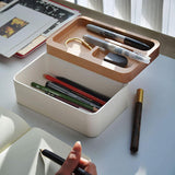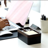 Those worries are relegated to the past thanks to this Modern Valet Tray. Contemporary and perfectly balanced between feminine elegance and masculine appeal, this beauty is perfect for anyone who craves a little more organization in their life. The seemingly simple lid features a compartmentalized design that provides separation and yet quick access to important items like your ear pods and phone. Touch the magnetized lid and it seems to float open, revealing extra storage space below.