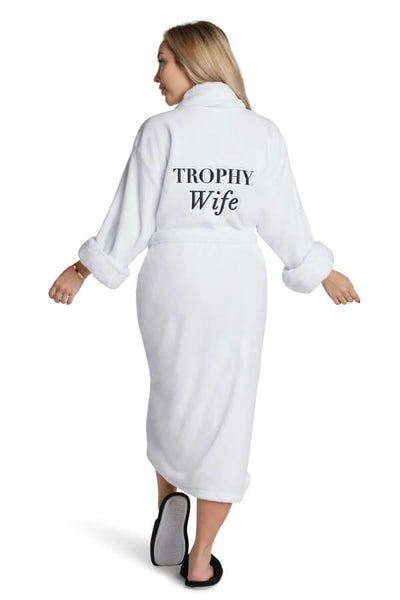 This Trophy Wife Robe isn’t a sports car or diamond ring, but it’ll make her just as happy. Or at least get you really, really close. She’ll love the roomy fit, comfy plush fabric, and invitation to lounge around the house. You’ll love the phrase “Trophy Wife” emblazoned across the back.